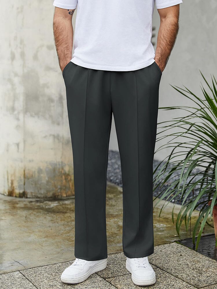 Casual Solid Elastic Waist Cotton Linen Straight Pants