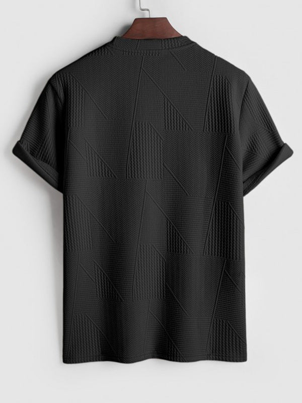 Geometric jacquard round neck short sleeved T-shirt-Black