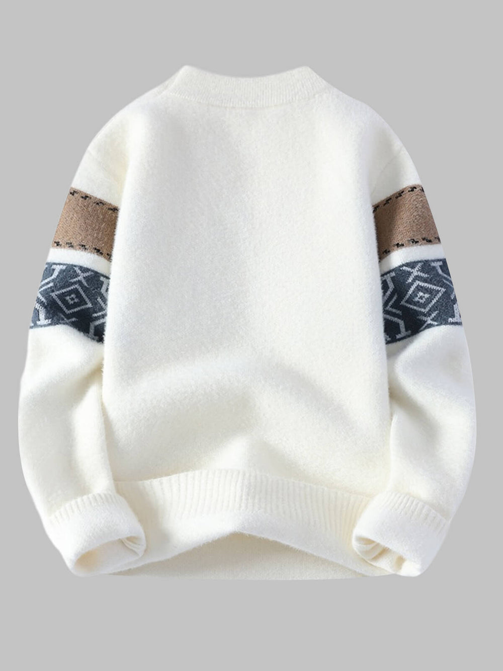Men's Color-Block Letter Jacquard Loose Crew Neck Sweater