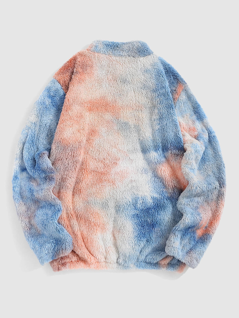 Men's Colorful Fleece Zip Pocket Stand Collar Sweatshirt