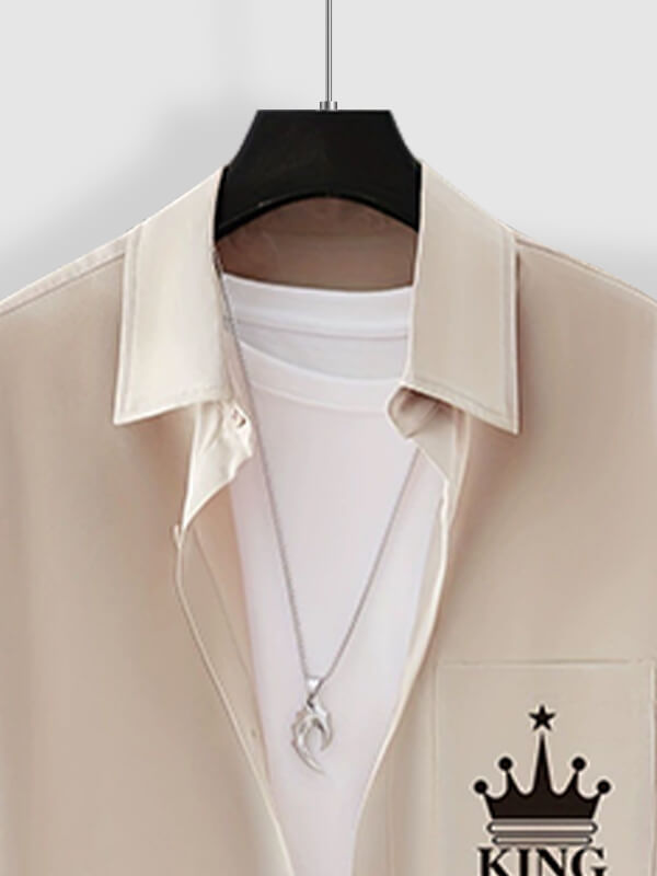 Men's Crown Print Casual Short-Sleeve Shirt and Shorts Set