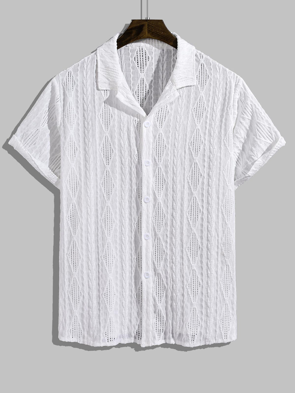 Men's Retro Hollow Button Short Sleeve Shirt Shorts Set