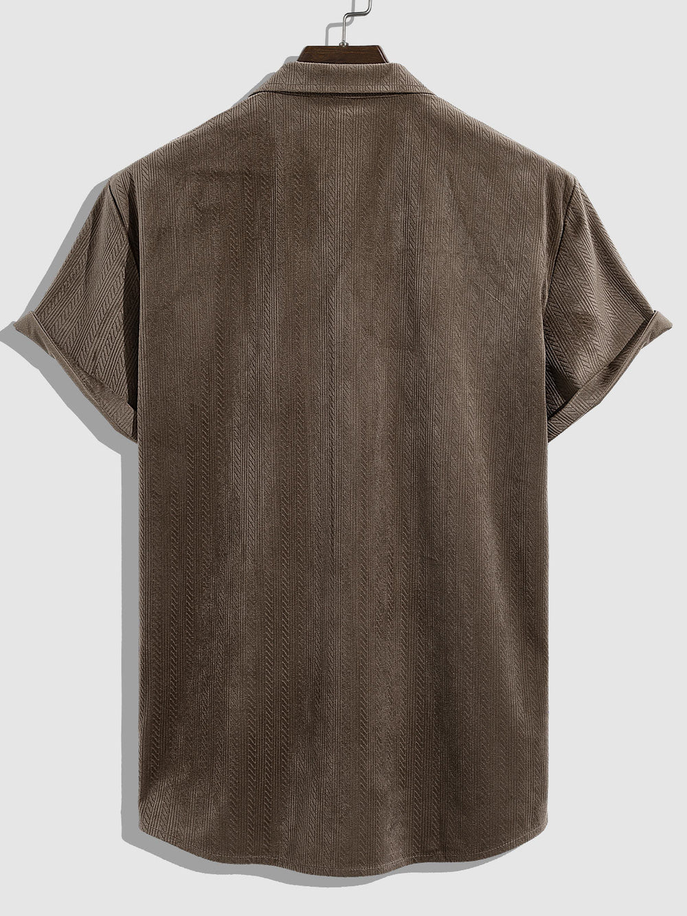Men's Solid Color Textured Cuban Collar Short Sleeve Shirt