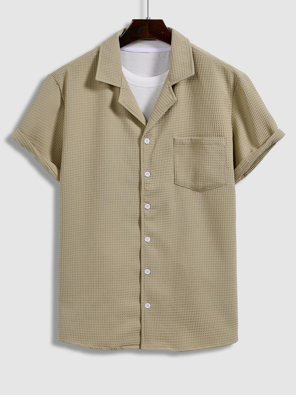 Men's Textured Waffle Cuban Collar Shirt Corduroy Casual Shorts Set