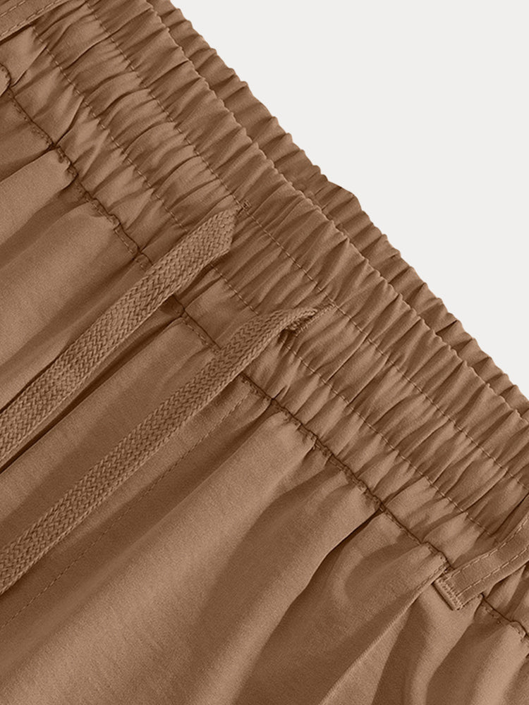 • Details: Elastic waist with adjustable drawstring, crease line, 2 side pockets, one back pocket