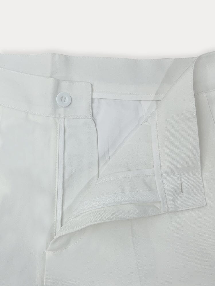 • Pants: Straight legs, two slant pockets and back pockets, belt loops