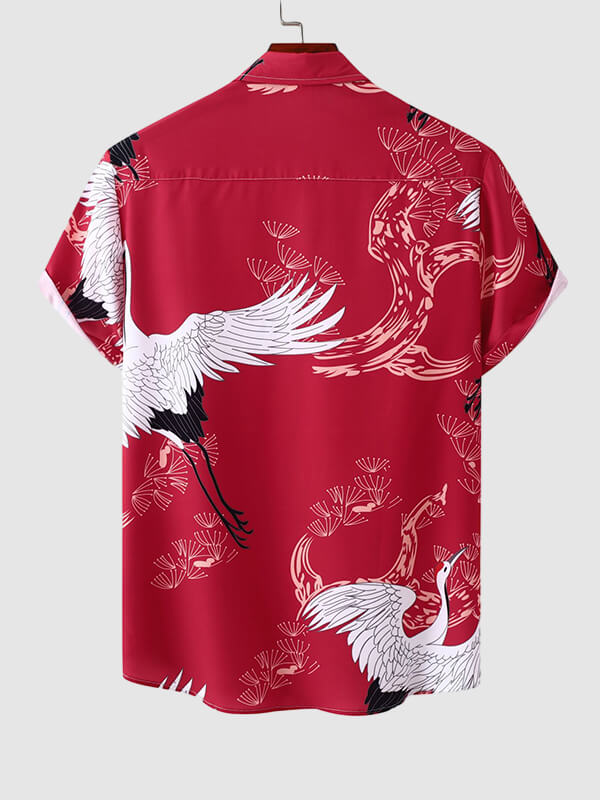 Men's Hawaiian Animal Print Beach Short Sleeve Resort Shirt