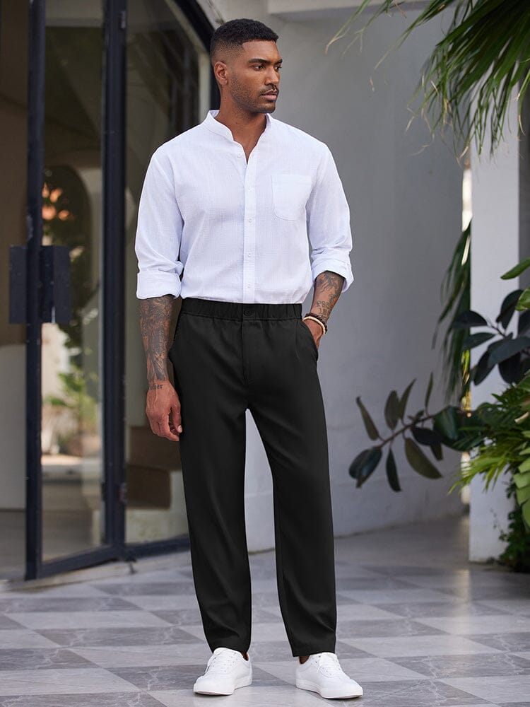 • Pants Details: Drawstring elastic waist and zipper makes these expandable twill trousers flexible to fit, two deep side pockets are enough to store your keys, wallet or other belongings.
